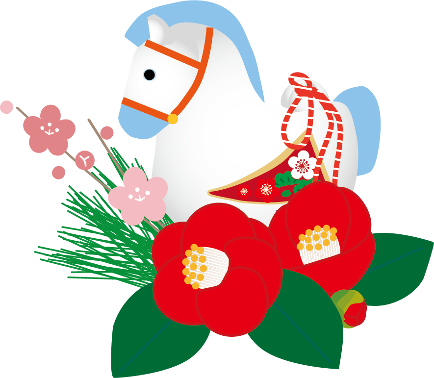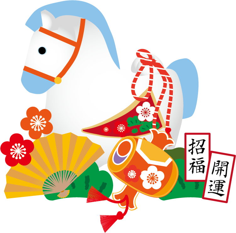 かわいい干支午(うま)馬のイラストが無料(登録不要)でダウンロード出来ます。年賀状の挿絵としてお使いいただけます。2026年 年賀状印刷用素材(郵便葉書)としてのご使用は個人様はもちろん法人・ビジネス用でも無料でご使用頂けます。ご使用のさいは利用規約を読まれてご使用くださいませ。年賀状印刷用イラスト素材は各画像の上でクリック【 別枠で開いた大きな画像 】をダウンロードしてご使用ください。