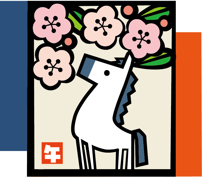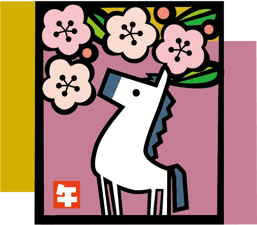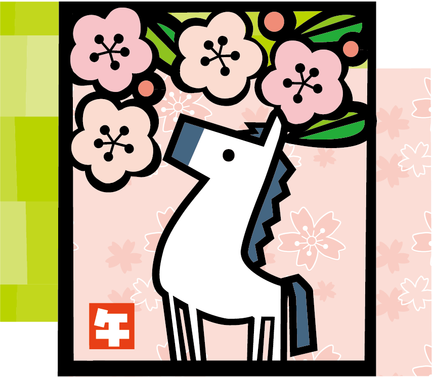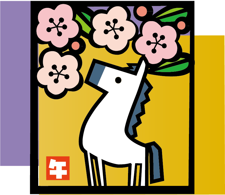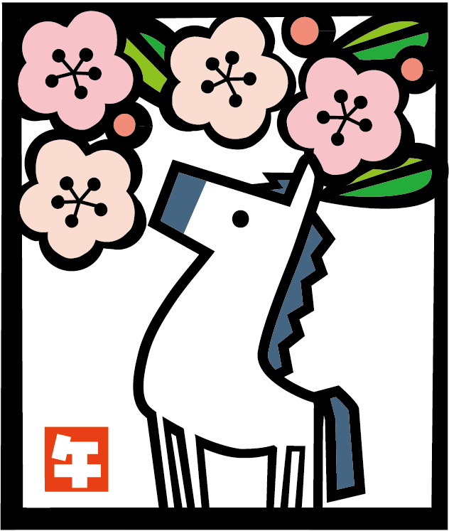かわいい干支午(うま)馬のイラストが無料(登録不要)でダウンロード出来ます。年賀状の挿絵としてお使いいただけます。2026年 年賀状印刷用素材(郵便葉書)としてのご使用は個人様はもちろん法人・ビジネス用でも無料でご使用頂けます。ご使用のさいは利用規約を読まれてご使用くださいませ。年賀状印刷用イラスト素材は各画像の上でクリック【 別枠で開いた大きな画像 】をダウンロードしてご使用ください。